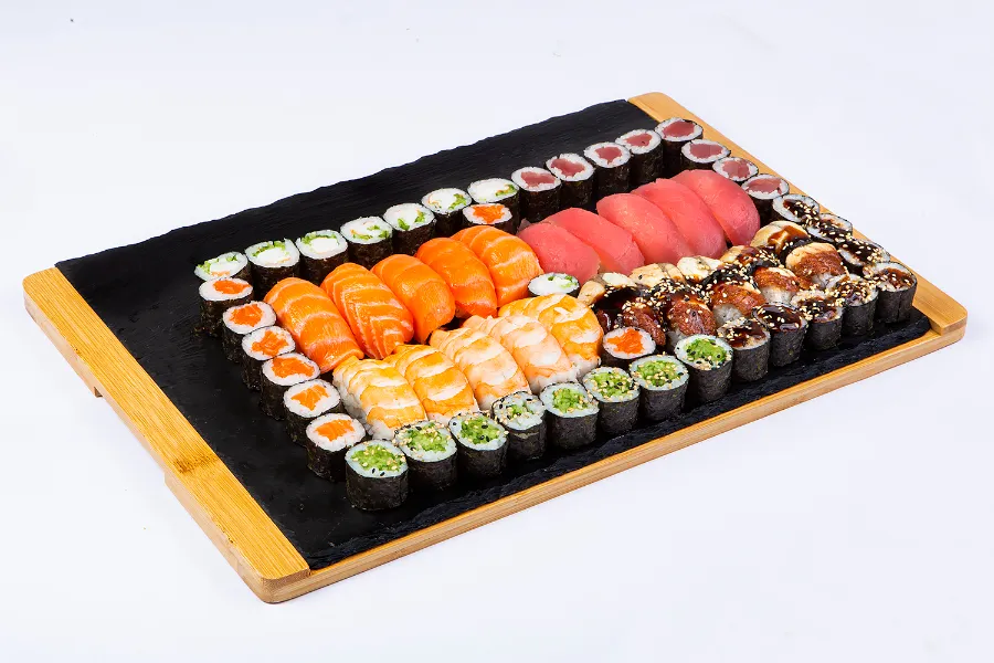 საკე მაკი 8 ნაჭ. ები მაკი 8 ნაჭ. მაგურო მაკი ნაჭ. უნაგი მაკი 8 ნაჭ. კიტრის მაკი 8 ნაჭ. ორაგულის ნიგირი 5 ნაჭ. გველთევზის ნიგირი 5 ნაჭ. კრევეტის ნიგირი 5 ნაჭ. თინუსის ნიგირი 5 ნაჭ. 60 ნაჭერი.